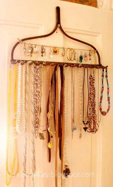 Not too long ago, on Pinterest, I saw this cool old rake that had been used as a jewelry hanger! Genius!